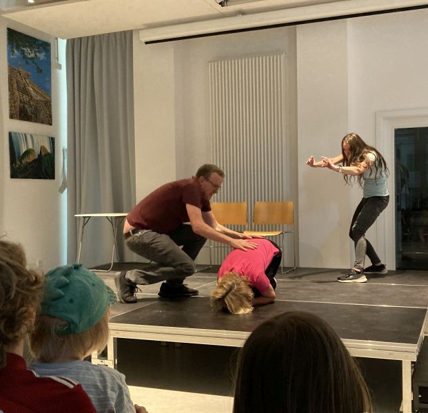 Spielen und Ausprobieren – Theater machen ohne Text aber durchaus mit Drama – sich und andere neu kennenlernen – Lachen: miteinander, übereinander und sich selbst – große Gefühle und eine Menge Spaß teilen – das und noch viel mehr passiert in unserer Improtheatergruppe „Improsant“.